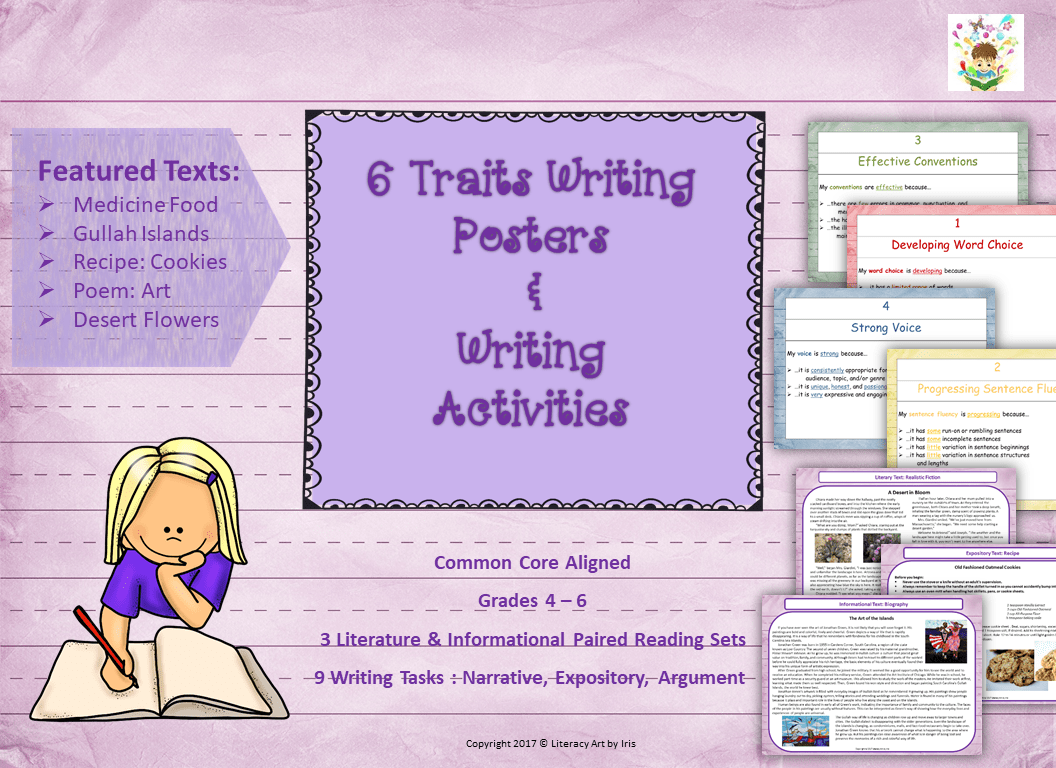This resource allows students to read a literary and informational paired set of passages and write a narrative, expository, and/or argumentative essay. This resource also includes the 6 traits of writing posters that will guide students as they write. Or, students can use the Six Traits of Writing Expandable Bookmarks for easy access to the 6 traits guidelines.